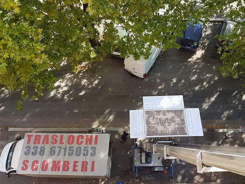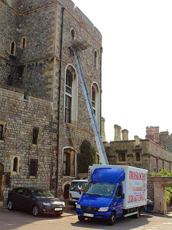 Secondo il tipo di trasloco furgoni a gru per la movimentazione fino al piano stradale.